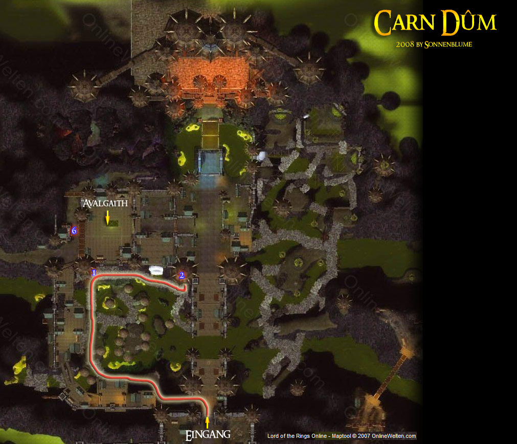 Ein Jäger holt immer eine Angmarim-Hohepriesterin. Diese kommt mit zwei Begleitern vom blassen Volk. Sobald ein Paket an Gegnern besiegt ist, holt man das nächste bis nur noch der Cargûl übrig ist. |