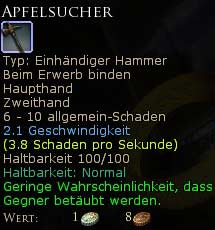 Der Obstgarten von Beutelsend liegt genau westlich von Beutelsend selbst. Ohm Gamdschie hat Euch darum gebeten, etwas Gartenarbeit für ihn zu übernehmen und die heruntergefallenen Äpfel im Obstgarten von Beutelsend aufzulesen. Er vertraut darauf, dass die Sackheim-Beutlins keinen Grenzer verscheuchen werden. Hintergrund Ohm Gamdschie ist von den Sackheim-Beutlins als Gärtner von Beutelsend entlassen worden. Vor seiner Entlassung pflückte er gerade Äpfel im Garten, konnte seine Arbeit aber nicht beenden.