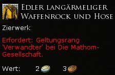 Die Ruf-Belohungen der Mathom-Gesellschaft sind eher für Rollenspieler geeignet. Sie mögen dem Normalspieler eher als Sinnlos erscheinen. Lediglich die "Auszeichnung der Hobbit-Tugend" könnte für alle Spieler interessant sein. |
