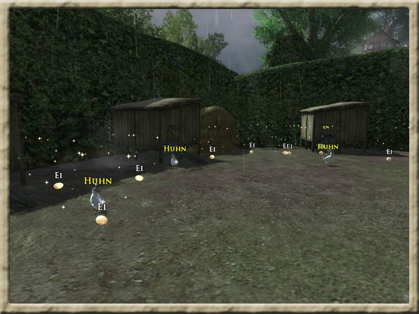 Eier findet man in der Nähe der Hühner auf dem Nordhüttinger-Hof. Rosa Dachsbau hat Euch gebeten, mehrere Eier für die Pastetenherstellung zu besorgen. Hintergrund Nun wird Eischnee aus Eiweiß benötigt, der auf die Kruste der Pasteten gestrichen werden soll. |
