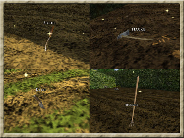 | Die Gegenstände liegen ausschließlich auf den Feldern. Lauft also jeden Weg der durch Nordhüttingers-Hof verläuft ab und besucht alle Felder. Jeder Gegenstand kann nur ein Mal eingesammelt werden. |
