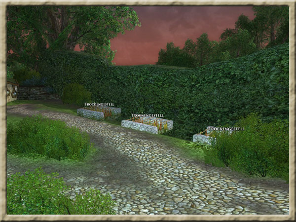 Die Trockengestelle stehen nordöstlich von Bella Gamdschie auf dem Nordhüttinger-Hof. Das sortierte Pfeifenkraut muss auf die Trockengestelle gelegt werden. Hintergrund Wenn es um Pfeifenkraut geht, ist mit Hobbits nicht zu spaßen. Keiner von ihnen würde einen Markt besuchen, |