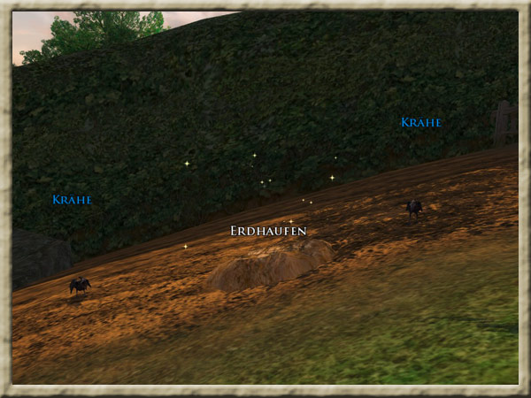 | Im markierten Gebiet findet man Erdhaufen auf den Feldern. Dort muss man die Vogelscheuchen aufstellen. |