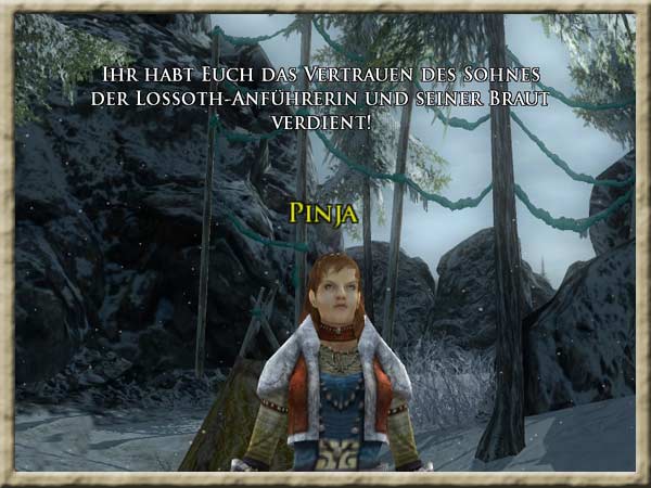 Ihr solltet die Schneeglöckchen und Felle zu Pinja bringen.