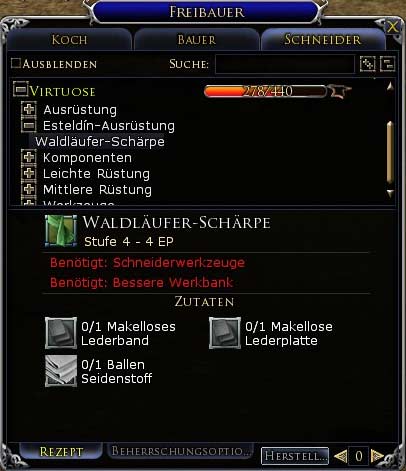 Ziel der Aufgabe: Fertigt Waldläufer-Schärpen und bringt sie zu Techeron in Esteldin |