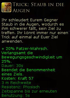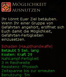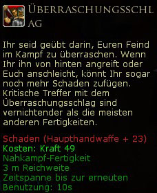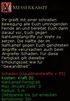 | Stufe | Fertigkeit | Gruppe | Kosten | Bemerkungen |