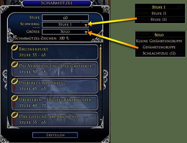| Die neuen Menüs für die Scharmützel findet Ihr hier: |