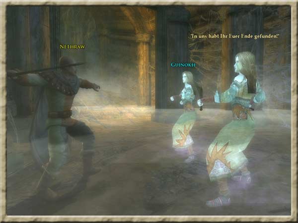 Nethraw ist im Krúslë Lannan, östlich von Gabilshathûr. Um das Krúslë Lannan zu öffnen, müsst Ihr die sieben Schwerter auf die richtigen Sockel legen. |