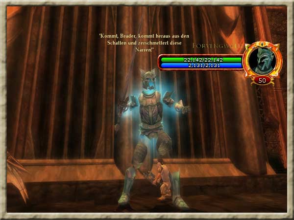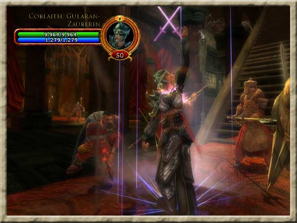 Bis der Kastellan wieder aufsteht, kann die Gruppe die zweite Zauberin besiegen oder einfach auch das Rätsel lösen. Nachdem der Kastellan dann besiegt ist, nimmt man den Schlüssel zum Tor im Erdgeschoss aus der Truhe und begibt sich dorthin. |