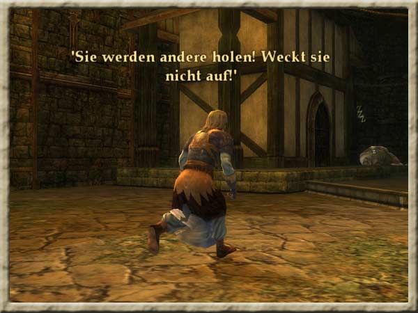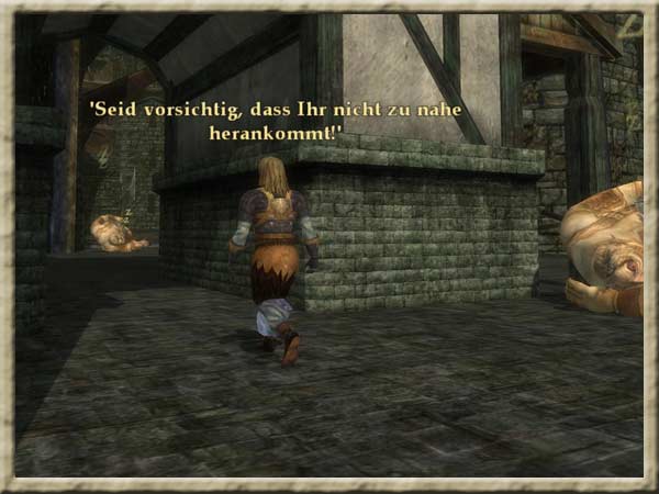 Auf dem Weg zu Erscin sollte die Gefährtengruppe alle Gegner vernichten, damit bei der folgenden Begleitaufgabe keine ungewünschten Probleme auftreten. Achtet vor allem auf die Hornbläser. Diese müssen sehr schnell besiegt werden, sonst holen sie bis zu drei Elite Kreaturen. |