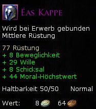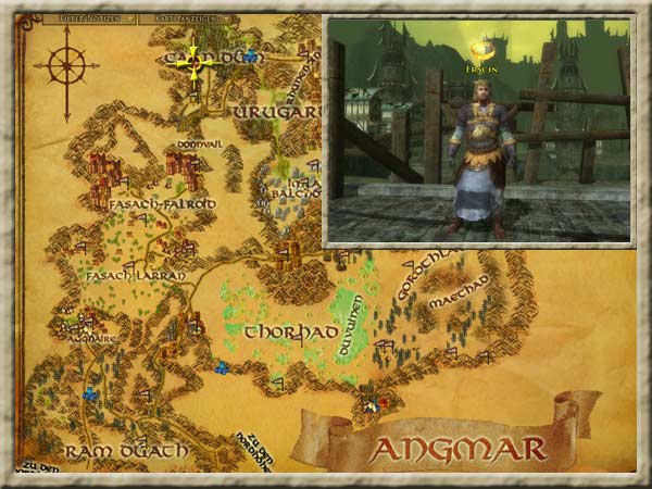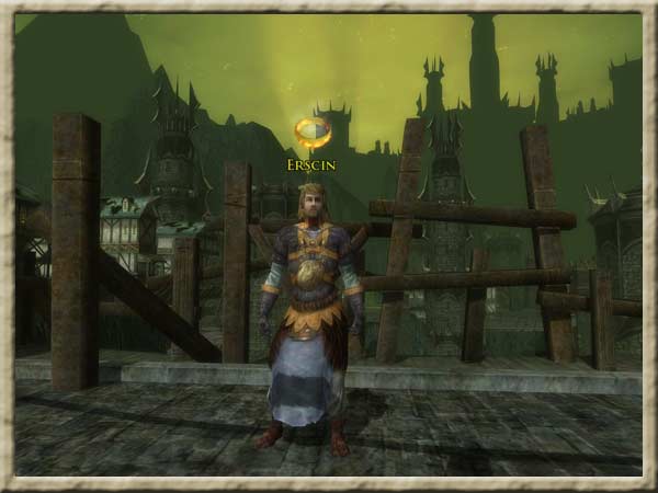 Carn Dûm liegt westlich von Tármunn Súrsa. Éa hat Euch angefleht, ihren vermissten Mann, den Bergmenschenkrieger Erscin, zu finden. Hintergrund Die Sklaven von Carn Dûm sind wieder frei, doch Éa, eine Frau der Bergmenschen aus Tármunn Súrsa, vermisst noch immer ihren Mann. |
