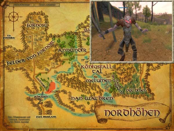 Die Tarkrîp, der Ork-Stamm, der Schragen angegriffen hat, sind in den Nordhöhen verstreut. Ihr Hauptlager liegt vermutlich in der Nähe der Stadt. Kemp der Radmacher hat Euch gebeten, dass Ihr Euch für ihn an den Orks des Tarkrîp-Stammes rächt. Hintergrund Kemp, der alte Radmacher, will an den Orks Rache nehmen, die Schragen angegriffen haben. |