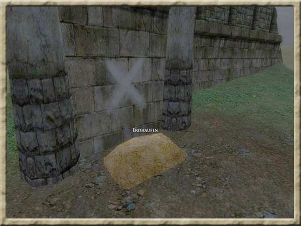 Kemp der Radmacher sagte, dass sein Schatz in der Ruine von Minas Vrûn vergraben wäre, nordöstlich von Schragen. Das Versteck soll in einem Torbogen liegen, der mit einem "X" markiert ist. Er bat Euch, seinen versteckten Schatz zu finden, so dass Nellie Boskins helfen kann, Schragen zu retten. Hintergrund Kemp berichtete Euch davon, wie er den Angriff der Orks überlebte und Nellie Boskins beschloss, Schragen zu retten. |