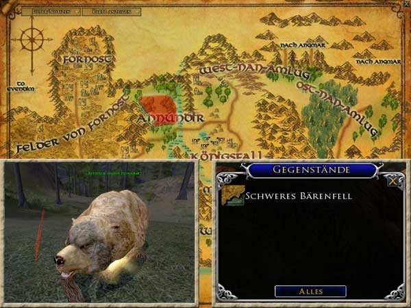 Ihr könnt Bären in den nördlichen Hügeln von Annúndir finden, östlich von Amon Raith. Agnes Marktler ist der Ansicht, dass die Bedrohung durch die Warge schon bald ein Ende finden wird, und macht sich größere Sorgen wegen der Bären, die schon seit Jahren eine Gefahr für ihren Viehbestand darstellen. Sie hat Euch gebeten, die Anzahl der Bären zu reduzieren und ihre dicken Felle einzusammeln. Dadurch wird ihr Vieh geschützt und außerdem kann man aus den Fellen Zelte und Kleidung fertigen. Hintergrund Agnes Marktler bewirtschaftet schon seit Jahren ihren eigenen Hof und obwohl sie ihn verlassen hat, als die Warge auftauchten, denkt sie bereits jetzt über ihre Rückkehr nach. |