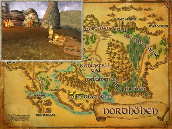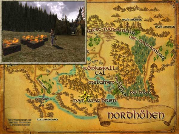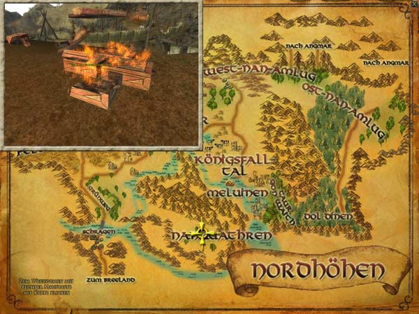 Die nächste Station ist das Feuer auf dem Nordhügel. Dieses erreicht man, wenn man vom ersten Feuer aus über die östliche Brücke läuft. |