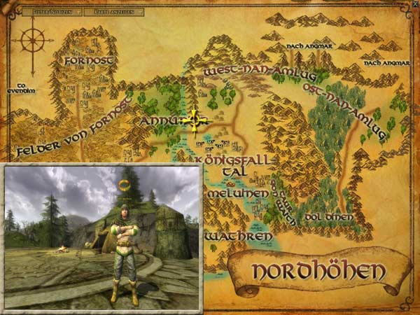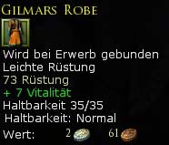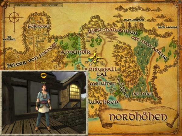 Gilmar ist auf Gatsons Hof. Istuienn, die sich um das Archiv der Waldläufer kümmert, gab Euch einen Auszug einer alten Chronik. Daraus geht hervor, dass ein Vorfahre Gilmars Eärnur, einem Prinzen Gondors, das Leben rettete und zum Dank für seinen Heldenmut auf ewig ein Stück Land verliehen bekam. |