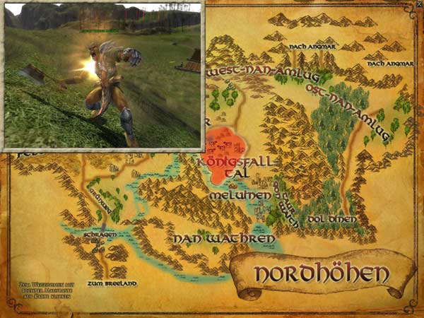 Die Orks, die die Mitte der Nordhöhen bedrohen, sind in der Nähe der Felder und Anhöhen des Königsfall-Tals zu finden. Celephadh bitte Euch, die Orks anzugreifen und sie hoffentlich zu verjagen. Hintergrund Celephadh hat Euch um Eure Hilfe gebeten, das Land rund um Esteldín zu sichern. |