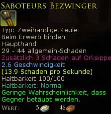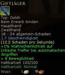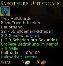 Der Tarkrîp-Saboteur dürfte sich irgendwo in Nan Wathren, östlich von Schragen, aufhalten. Hauptmann Trotter hat Euch gebeten, den Tarkrîp-Saboteur aufzuspüren und zu töten. Er empfahl Euch, den Ork an schmutzigen Wasserstellen zu suchen. Hintergrund Hauptmann Trotter hat Euch erklärt, dass die Kalebasse, die Ihr gefunden habt, von einem "Saboteur" hergestellt wurde, einem Ork, der an Gift und Krankheit Vergnügen findet. Er bat Euch, die Kreatur zu töten, bevor sie ihr schändliches Gift in Schragen verbreiten kann. |