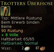 Hauptmann Trotter hält sich in Schragen auf. In Nan Wathren habt Ihr das Versteck des Tarkrîp-Saboteurs entdeckt und den Ork getötet. Ihr solltet Hauptmann Trotter von Eurem Sieg berichten. |