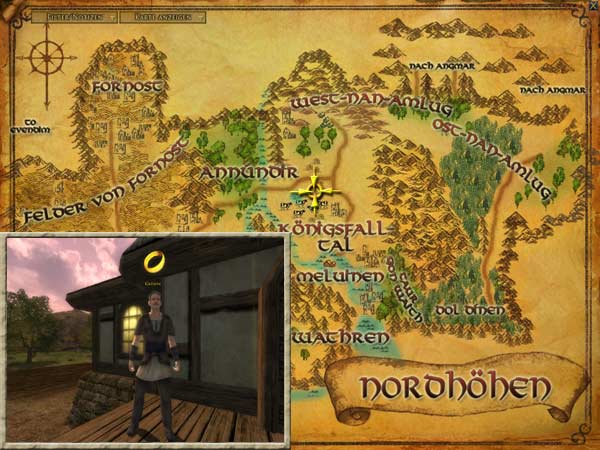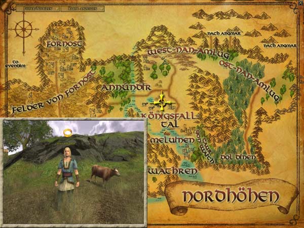 Gatson findet Ihr auf seinem Hof nördlich der Felder, wo seine Herde grast. Ihr und Alwin habt es geschafft, den Überfall der Orks auf Gatsons Herde abzuwehren. Ihr solltet zum Hof zurückkehren und Gatson davon unterrichten. |