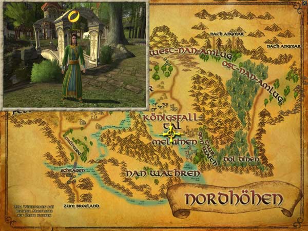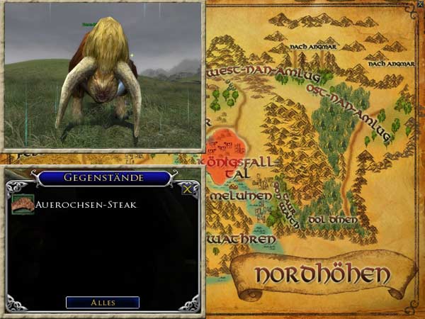 Auerochsen ziehen durch die Ebenen des Königsfall-Tals nördlich von Lin Giliath. Aglardir hat Euch gebeten, die Auerochsen im Königsfall-Tal zu jagen, um mit deren Fleisch die Vorräte von Lin Giliath wieder aufzufüllen. Er empfiehlt Euch, zusammen mit ein paar Verbündeten auf die Jagd zu gehen. Hintergrund Viele der in Lin Giliath gelagerten Vorräte wurden bei dem Angriff der Steintrolle zerstört. |