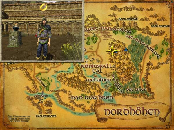 Das Ongbúrz-Lager liegt südwestlich von Esteldín auf der anderen Seite des Königsfall-Tals. Dagoras hat Euch gebeten, den Ork-Häuptling zu töten, und hofft, dass dessen Tod für Unordnung unter den Ongbúrz sorgt. Dagoras hat Euch empfohlen, für diesen Auftrag Verbündete mitzunehmen. Hintergrund Ein großes Aufgebot an Orks bewegt sich in Richtung Nordwesten als Vorhut des Hauptheeres, das durch die Nordhöhen marschiert. Diese Orks gehören dem Ongbúrz-Stamm aus Angmar an. Sie sind gerissen und bewandert im Bau von Belagerungswaffen und Verteidigungsanlagen. |