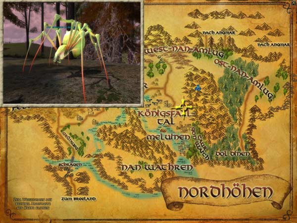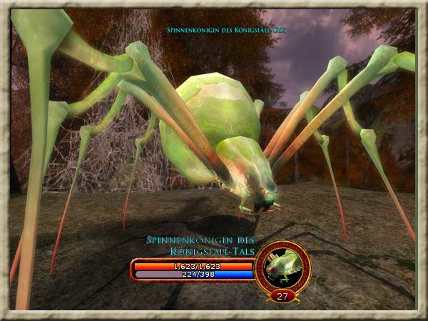 Die Königsfall-Spinnenkönigin ist irgendwo im Spinnennest südlich von Esteldín. Dagoras hat Euch gebeten, die Königin der Spinnen zu töten, die sein Volk bedrohen. Mit dem Tod der Königin sollte sich die Gefahr verringern, die von diesen garstigen Kreaturen ausgeht. Hintergrund Eine monströse Spinnenart hat südlich von Esteldín ein Nest gebaut und bedroht die Sicherheit des Außenpostens. |