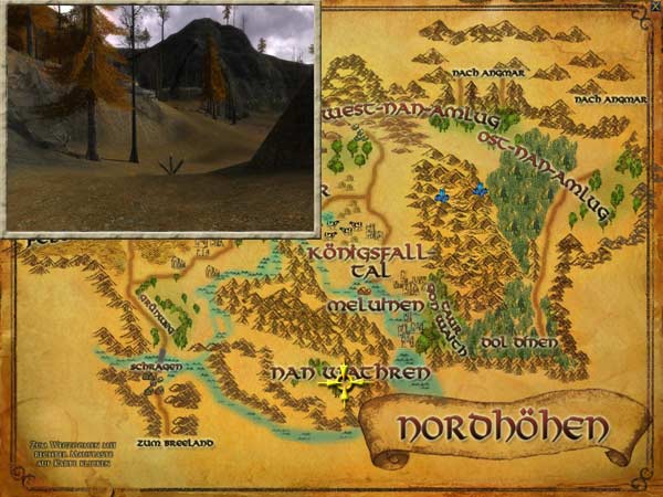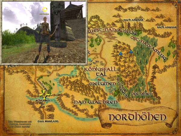 Um Lugbas zu erreichen muss man sich weit in den Südosten von Nan Wathren vorkämpfen. Viele Begegnungen mit Elite-Orks stehen auf dem Programm und man sollte sehr vorsichtig vorgehen. Es gibt eine Menge patrolierender Orks die einem das Leben schwer machen können. Wir haben den Weg über Meluinen gewählt. So muss man sich nicht durch das komplette Lager schlagen. |