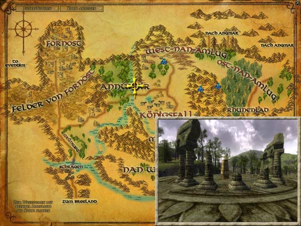Befragt Istuienn über das Buch der Fünf Städte. Hintergrund Ihr habt ein Buch gefunden, das die Grundsteine der fünf Städte Arthedains beschreibt. Diese Städte, die heute nur noch Ruinen sind, waren Henneth Rhún südlich von Fornost, Duintham, erbaut über einem alten Fluss, Carnoglin in den nördlichen Hügeln, Feste Ardúlin im Land der Seen und Dolindîr, das heutige Esteldín. |