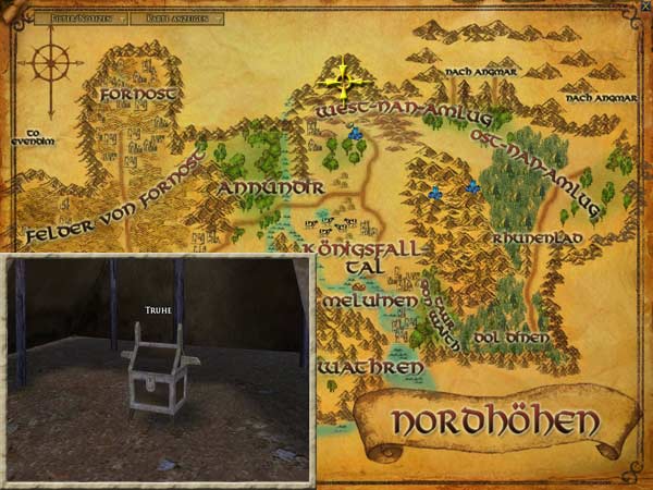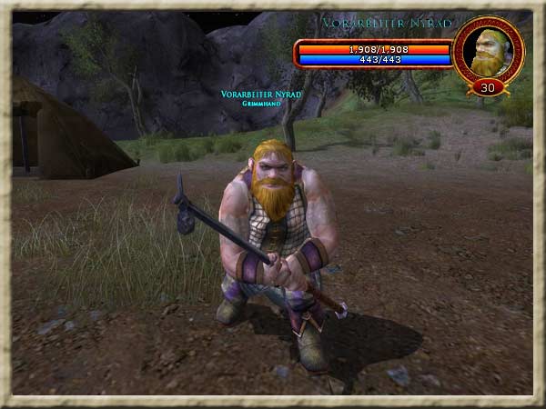 Vorarbeiter Nyrad geht immer ein Stück von seinem Lager weg. In dieser Zeit kann man die anderen Gegener im Lager besiegen. Um dem Kampf gegen Nyrad zu vermeiden, wartet man einfach, bis er wieder unterwegs ist und schnappt sich dann die Truhe. |