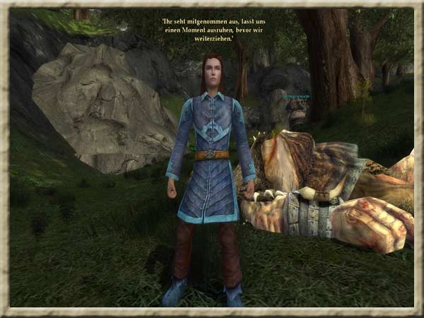 Lagorlam wurde bei seiner Vergeltungsaktion gegen die Trolle verletzt. Seine Wunsch nach Vergeltung ist gestillt, und er hat angeboten, Taur Gonwaith mit Euch zu verlassen. Hintergrund Lagorlam, ein Mitglied der Elbengemeinschaft, der mit Gildor Inglorion in den Norden kam, sucht in Taur Gonwaith Vergeltung gegen die Trolle, die Lin Giliath angegriffen haben. |