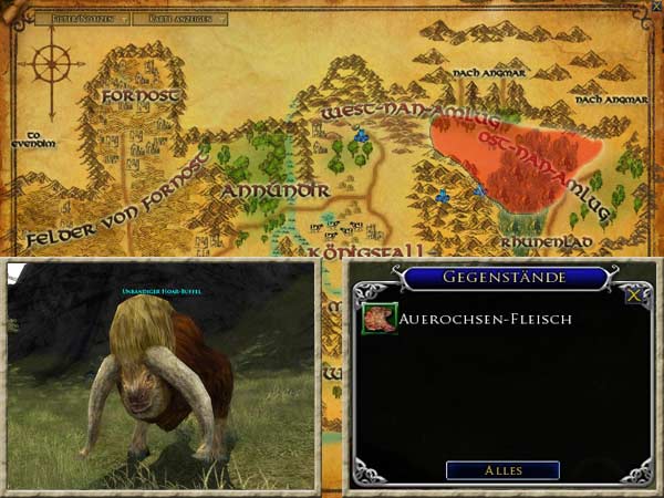 Die Auerochsen-Herden durchstreifen Vorgebirge und Ebenen des östlichen Nan Amlug. Quartiermeister Orgrin hat wegen des jüngsten Verlustes eines seiner Jäger zu wenig Leute; er hat Euch gebeten, bei der Jagd nach Auerochsen behilflich zu sein. Hintergrund Quartiermeister Orgrin hat Euch gebeten, Othrikars Lebensmittellager aufzufüllen. |