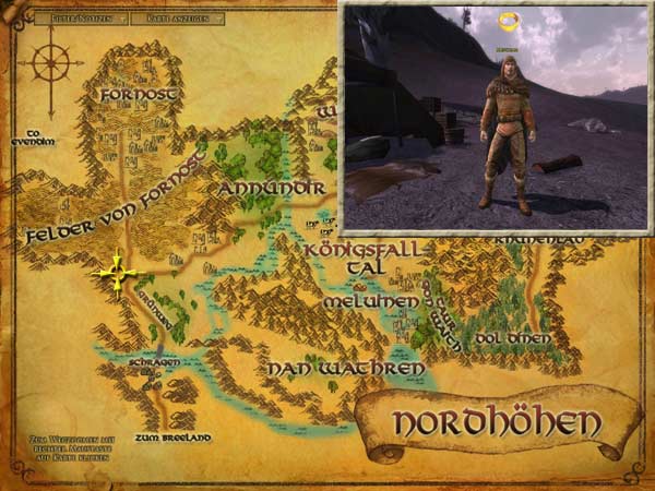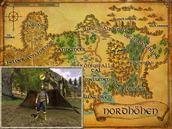 Mincham hat ein kleines Lager mit Blick auf den Grünweg, gleich südlich der Felder von Fornost. Daervunn brachte Euch die Befehle zurück und schickte Euch aus, mit Mincham zu reden, der sich in seinem Lager an der Grenze zu den Feldern von Fornost westlich von hier aufhält und der sich mit der Schwarzen Sprache von Mordor auskennt. Er hofft, dass Mincham die Befehle übersetzen kann. Hintergrund Ein gewaltiges Ork-Heer wütete durch Ram Dúath und verjagte die Menschen der Nordhöhen von ihren Höfen. Esteldín, die Heimat der wenigen verbliebenen Dúnedain des Nordens, blieb unentdeckt. Deshalb beginnen die Waldläufer dort, einen Gegenangriff gegen die Schwarze Flut von Angmar zu ersinnen. |