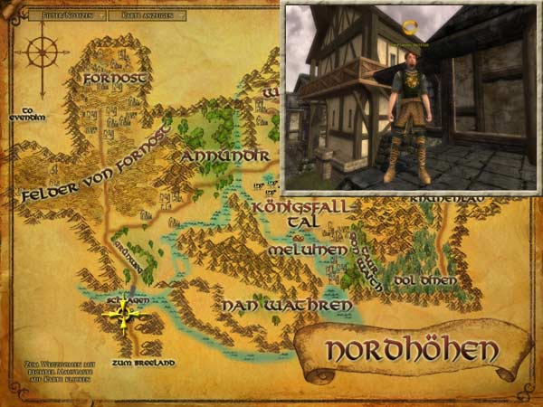 Hauptmann Trotter ist der Anführer von Schragen, das am Grünweg liegt, weit südlich der Felder von Fornost. Der Ort steht unter ständiger Beobachtung und fürchtet, dass die Orks des Tarkrîp-Stammes zurückkehren werden, um ihr Massaker und die Zerstörung der Stadt zu vollenden. Minchams Worte können Hauptmann Trotter vielleicht dazu bringen, den Süden um Hilfe zu ersuchen. Mincham hat Euch angewiesen, Hauptmann Trotter über die wahre Gefahr durch den Ork-Stamm aufzuklären, der sich die belagerte Stadt Schragen gegenübersieht. Hintergrund Während sich die Freien Völker der Nordhöhen um die Bedrohung durch das Heer der Orks in Dol Dínen gekümmert haben, bemerkten sie beinahe nicht, dass ein zweiter Feind im Westen nach Fornost marschierte. |