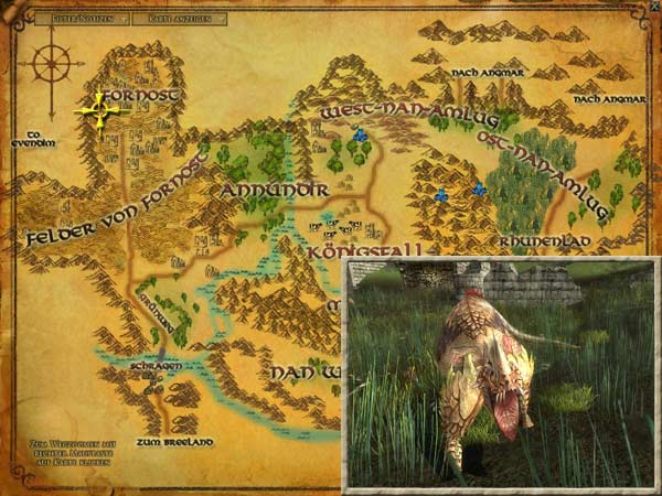 Die Würmer findet Ihr in den Ruinen von Fornost. Der Zwerg Bôrk hat Euch gebeten, die Ruinen von den Würmern zu befreien, in der Hoffnung, dass die Gefahr, die mit solchen Kreaturen einhergeht, damit gebannt wird. Hintergrund Felswürmer, die vom Truppendurchzug aus Angmar in die Nordhöhen gelockt wurden, haben begonnen, sich in den Bergen auszubreiten, und sind in großer Zahl auch schon nach Fornost vorgedrungen. |