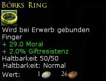 Bôrk befindet sich im Lager der Freien Völker am Südrand von Fornost. Kehrt zu Bôrk zurück und berichtet ihm von Euren Erfolgen gegen die Würmer in Fornost. |