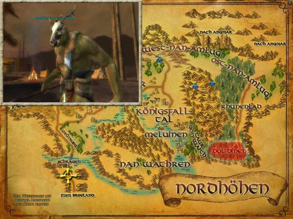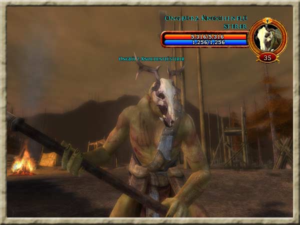 Ongbúrz-Knochenflüsterer findet Ihr im tiefsten Inneren von Dol Dínen, jenseits der Belagerungsmaschinen südöstlich von Esteldín. Die Waldläufer von Esteldín haben entdeckt, dass es unter den Orks von Dol Dínen Zauberer gibt. Hithlim hat Euch gebeten, sie zu suchen und zu töten. Er hat Euch geraten, Verbündete mitzunehmen. Hintergrund Ein gewaltiges Ork-Heer wälzte sich über den Ram Dúath und verjagte die Menschen der Nordhöhen von ihren Höfen. Esteldín, die Heimat der wenigen verbliebenen Dúnedain des Nordens, blieb unentdeckt. Deshalb beginnen die Waldläufer dort, einen Gegenangriff gegen die Schwarze Flut von Angmar zu ersinnen. |