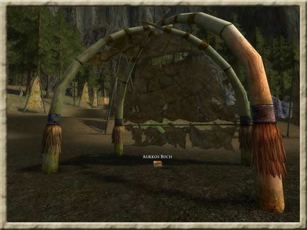 Asikkos Buch ist irgendwo im Lager der verräterischen Rauta-lehmä in Nan Amlug, östlich des Lagers der Suuri-lehmä, versteckt. Aus Angst, zu früh einen Krieg zu provozieren, möchte Asikko das Buch nicht selbst von den Rauta-lehmä holen. Stattdessen hat er Euch gebeten, dies für ihn zu tun. Hintergrund Der Waldläufer Gondranc hat Euch zum Lager der Erdsippe geschickt, um von Asikko, dem Häuptling der Erdsippe, ein Buch über Lederkunde zu holen. Als Ihr jedoch im Lager der Erdsippe ankamt, teilte Euch Asikko mit, dass das Buch gestohlen wurde. |