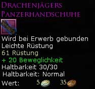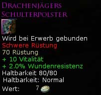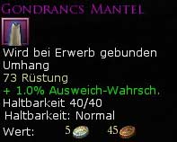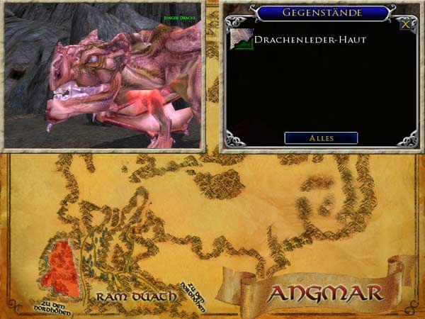 Ihr findet Drachen im westlichen Tal von Ram Dúath, nördlich von Esteldín. Um die Rüstungen fertigzustellen, die er für die Menschen von Schragen herstellt, braucht Gondranc die Lederhaut von Drachenschwingen. Er hat Euch darum gebeten, zusammen mit Begleitern loszuziehen und in Ram Dúath Drachen zu jagen. Hintergrund Auf Bitten von Waldläufer Gondranc seid Ihr zum Lager der Erdsippe nordöstlich von Esteldín gereist, um ein Buch mit Überlieferungen über die Lederkunde in Empfang zu nehmen, das der Erdsippen-Anführer Asikko ihm versprochen hatte. Mit diesen Überlieferungen kann er viel bessere Rüstungen für die Menschen von Schragen herstellen. |