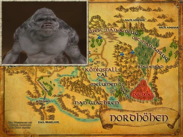 Trolle sind hinter den Gräben von Dol Dínen, südöstlich von Esteldín, im Schutze des Qualms verborgen. Hithlim berichtete Euch von der Nacht, als die Trolle die großen Belagerungsmaschinen von Angmar an seinem Wachposten vorbeizogen. Seither bereiten sie ihm große Sorgen, und er hat Euch gebeten, Euch Verbündete zu suchen und so viele Trolle wie möglich zu töten. Hintergrund Ein großes Ork-Heer ist in Ram Dúath eingefallen und hat die Menschen der Nordhöhen von ihren Höfen vertrieben. Esteldín, Heimstatt der wenigen verbliebenen Dúnedain des Nordens, ist bislang noch nicht entdeckt worden. Von dort aus bereiten die Waldläufer ihre Offensive gegen die Schwarze Flut von Angmar vor. |
