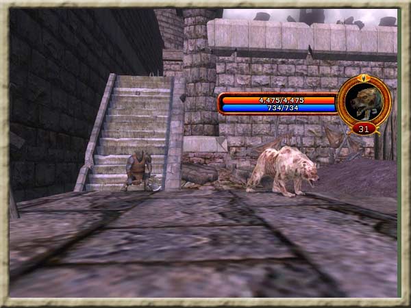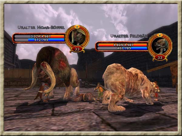 Sobald man den Schänder auf ca. 20% gebracht hat, ruft er Verstärkung in Form eines Bären und eines Büffels. |