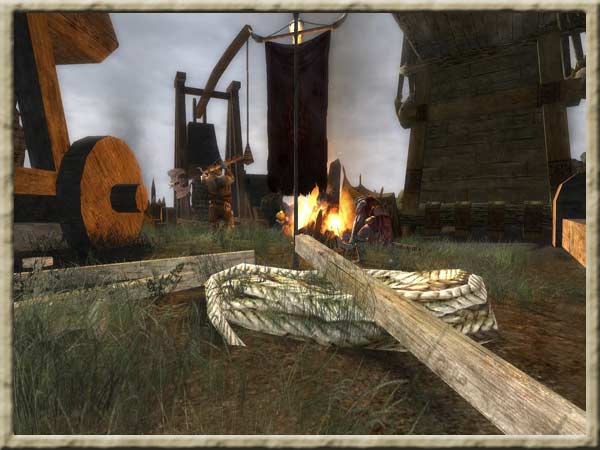 Die Einzelteile der Belagerungswaffen werden im Ork-Lager am Bergfried in der Stadt Fornost zusammengebaut. Gareth Copp hat Euch gebeten, die Einzelteile der Belagerungswaffen, die die Blogmal-Orks zusammenbauen, zu zerstören und somit Angmars Bestrebungen, Eriador einzunehmen, zunichtezumachen. Hintergrund Die Orks des Blogmal-Stammes fertigen Belagerungswaffen an, die gegen Schragen und das dahinterliegende Breeland eingesetzt werden sollen. |