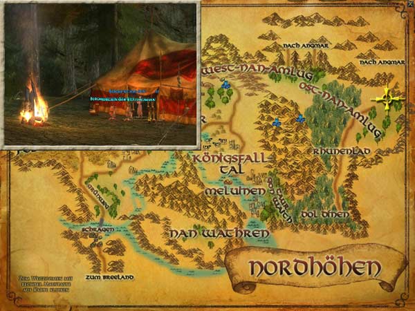 Im Schatten des Ram Dúath führt eine Eidbewahrerin der Angmarim ihre Truppen nach Süden in die Nordhöhen. Ihr müsst sie finden und töten. Arohir hat Euch um Hilfe dabei gebeten, die Anführerin der Angmarim-Truppen zu finden und zu töten, und Euch erklärt, dass Ihr Unterstützung finden müsst, bevor Ihr diese Aufgabe angeht. Hintergrund Bergmenschen aus Angmar sind der Ork-Armee über den Ram Dúath in die Nordhöhen gefolgt und haben oben am Pass ein Lager eingerichtet. Die Bergmenschen sollen den Zugang von Angmar her freihalten. |