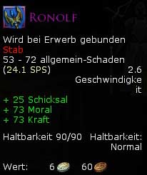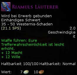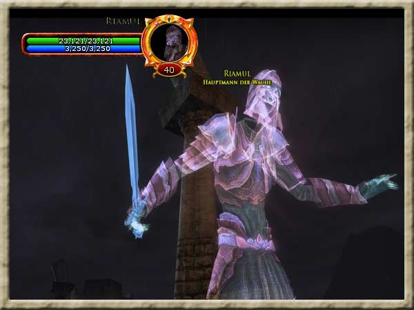 Riamul ist irgendwo in Fornost. Emma Schlauwerk hat Euch gebeten, den Schatten-Hauptmann Riamul zu suchen und ihn von seiner Begnadigung zu unterrichten. Sie hofft, dass seine Freiheit dazu führen wird, dass seine Männer ihm nachfolgen. Hintergrund Eine Legende über die Schlacht von Fornost erwähnt einen großen Hauptmann der Armee von Fornost, der seine Männer ins Feld führte, nur um seinen Schwur zu brechen und sie stattdessen gegen König Arvedui anzuführen. |