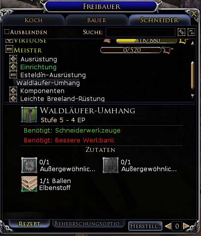 Ziel der Aufgabe: Fertigt 5 Waldläufer-Umhänge |