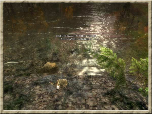 Sicher lassen sich am Ufer des Bruinen, östlich von Echad Candelleth, Hinweise darauf finden, wie sich die Kreatur fangen lassen könnte, die Adwold und Tristan gesehen haben, Tristan hat beschlossen, dass er die mysteriöse Kreatur fangen möchte, die Adwold und er gesehen haben. Deshalb hat er Euch gebeten, die Ufer des Bruinen nach Hinweisen auf die Gewohnheiten der Kreatur abzusuchen. Hintergrund Tristan hat Euch erzählt, dass er einen unheimlichen Schatten am Ufer des Bruinen gesehen hat. Er glaubt, dass dies die Kreatur sein könnte, der auch Adwold begegnet ist. |