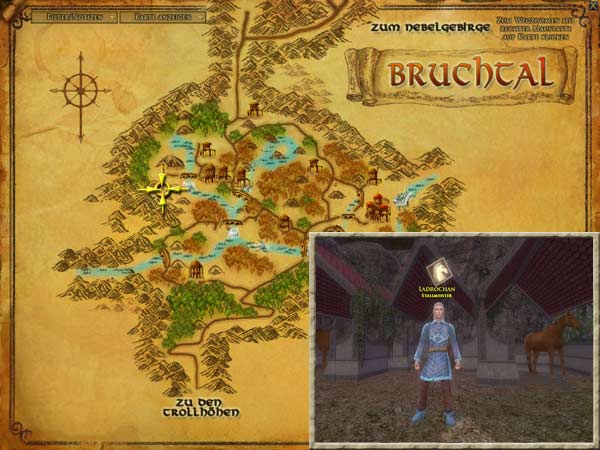Ihr gelangt nach Mirobel, indem Ihr Euch ein Pferd beim Stallmeister in Bruchtal abholt.