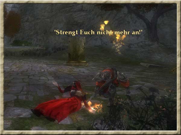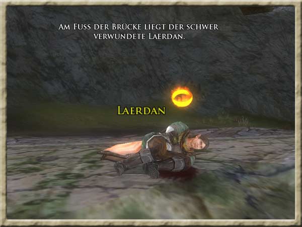 Am Eingang zu Tham Mírdain seht Ihr den schwer verwundeten Laerdan liegen.