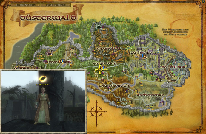 Barvessain befindet sich hoch oben auf einem der Türme der Feste Galadh. Ihr habt zahlreiche Zutaten für Barvessain besorgt und solltet sie ihr zur Feste Galadh bringen. |