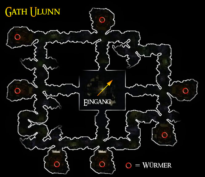 Gath Ulunn befindet sich hinter den Mauern des Ork-Lagers in Gathbúrz. In der Halle der Lichter, einer Höhle in der Dunkelsenke, Barvessain hat Euch gebeten, ihr Eierschalen der Würmer von Gath Ulunn, Schleim von Glühwürmern in der Halle der Lichter und gereiften Audaghaim-Wein aus Agistath zu bringen. Hintergrund Barvessain hat Euch gebeten, ihr beim Sammeln von Zutaten für ihre alchemistischen Untersuchungen zu helfen. |